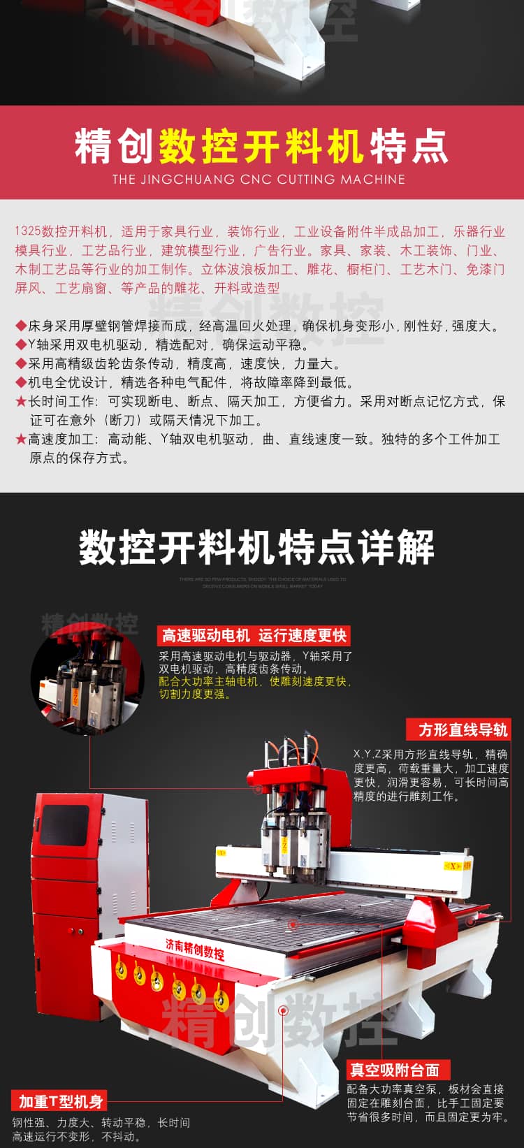整机尺寸:1325木工雕刻机,适用于家具行业,装饰行业,工业设备附件半成品加工,乐器行业,模具行业,工艺品行业,建筑模型行业,广告行业。