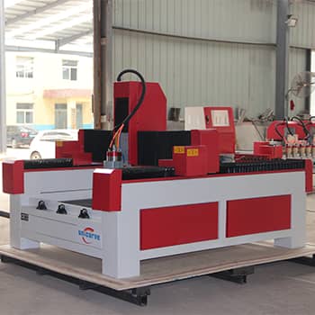 整机尺寸:900*1500*300mm适用范围 天然大理石、花岗石、青石、砂岩、人造石、墓碑、里程碑、瓷砖、地板砖、金属、玻璃及硬质物体材料的三维浮雕及线雕、切割、倒边、钻孔、二维雕刻。性能优势 ◆床身采用厚壁钢管焊接而成,经高温回火处理,确保机身变形小,刚性好,强度大。 ◆Y轴采用双电机驱动,精选配对,确保运动平稳。 ◆采用高精级齿轮齿条传动,精度高,速度快,力量大。 ◆机电全优设计,精选各种电气配件,将故障率降到最低。 ◆全部防尘防水设计,全方位保护机器传动部件 ★长时间工作:可实现断电、断点、隔天加工,方便省力。采用对断点记忆方式,保证可在意外(断刀)或隔天情况下加工。 ★高速度加工:高动能、Y轴双电机驱动,曲、直线速度一致。独特的多个工件加工原点的保存方式。