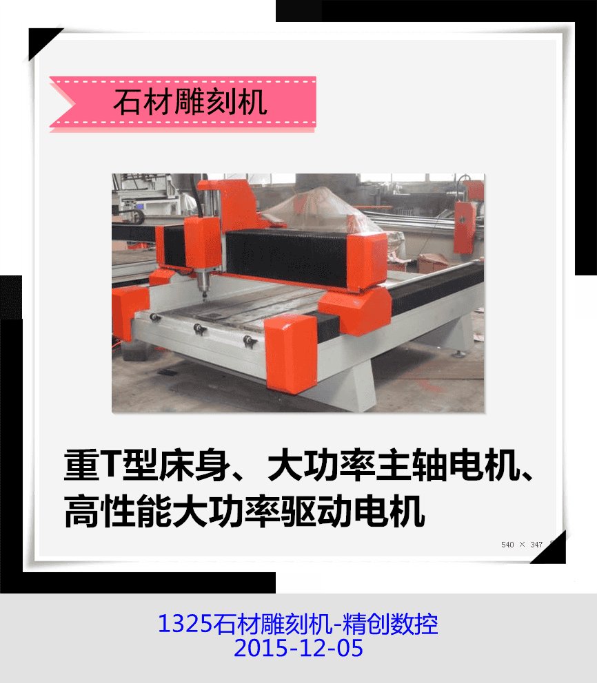 整机尺寸:90*1500*300适用范围 天然大理石、花岗石、青石、砂岩、人造石、墓碑、里程碑、瓷砖、地板砖、金属、玻璃及硬质物体材料的三维浮雕及线雕、切割、倒边、钻孔、二维雕刻。性能优势 ◆床身采用厚壁钢管焊接而成,经高温回火处理,确保机身变形小,刚性好,强度大。 ◆Y轴采用双电机驱动,精选配对,确保运动平稳。 ◆采用高精级齿轮齿条传动,精度高,速度快,力量大。 ◆机电全优设计,精选各种电气配件,将故障率降到最低。 ◆全部防尘防水设计,全方位保护机器传动部件 ★长时间工作:可实现断电、断点、隔天加工,方便省力。采用对断点记忆方式,保证可在意外(断刀)或隔天情况下加工。 ★高速度加工:高动能、Y轴双电机驱动,曲、直线速度一致。独特的多个工件加工原点的保存方式。质量巅峰 优质服务