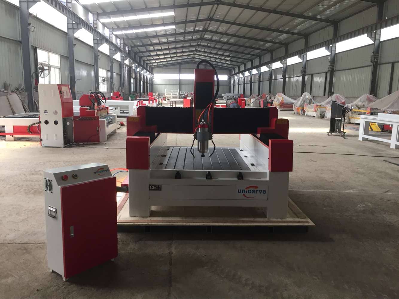 整机尺寸:1212*6015*9015(mm)床身采用厚壁钢管焊接而成,经高温回火处理,确保机身变形小,刚性好,强度大。Y轴采用双电机驱动,精选配对,确保运动平稳。采用高精级齿轮齿条传动,精度高,速度快,力量大。本产品主要用于天然大理石、花岗石、青石、砂岩、人造石、墓碑、里程碑、瓷砖、地板砖、金属、玻璃及硬质物体材料的三维浮雕及线雕、切割、倒边、钻孔、二维雕刻。一切努力只为得到您的认可,贴心服务,放心选购~
